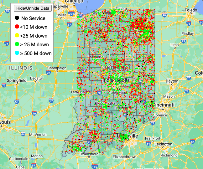 The goal for the Indiana Speed Test is to gather data in all areas of the state. The software platform and the data will be available to local governments and organized broadband groups to analyze potential solutions and aid their applications for Indiana’s Next Level Connections Grants and a variety of federal grants.
